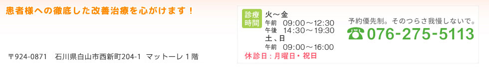早期の回復と改善・良い状態をキープ・のために、検査で原因を追求・発見し、症状の説明・治療計画を提案いたします。