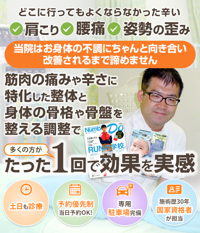 私たちの整骨院では、スポーツマッサージと言う手技を中心に施術することで、次の治療を行っています。